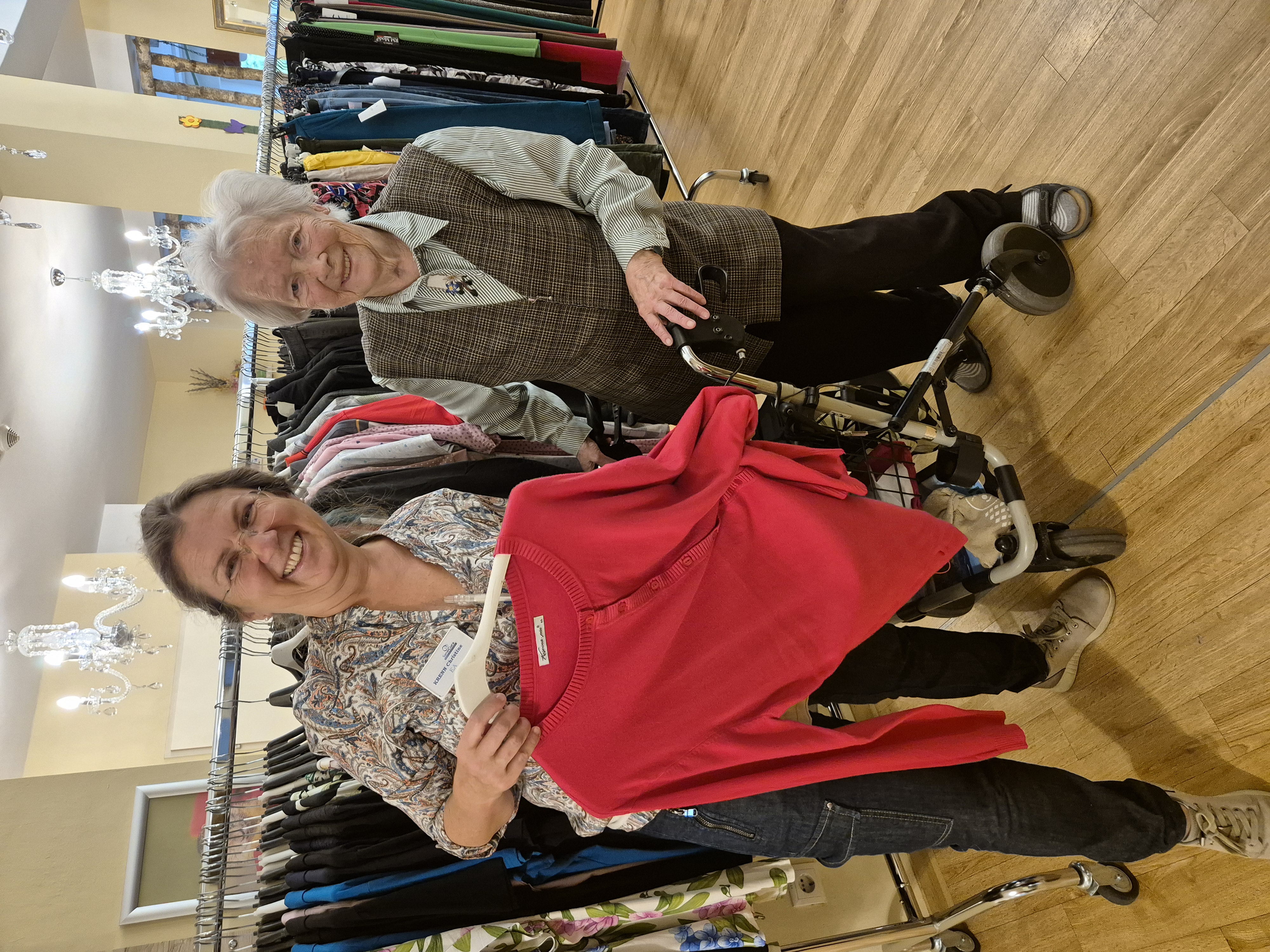 Im SeneCura Sozialzentrum Unterpremstätten stand alles im Zeichen von Mode. Die Bewohner:innen hatten die Möglichkeit, italienische Damen- und Herren-Mode zu shoppen. Natürlich wurden die Seniorinnen und Senioren perfekt und liebevoll beraten. Die neuen Kollektionen sind immer wieder ein Highlight für die Bewohner:innen. Der Nachmittag sorgte, vor allem unter den Damen, für strahlende Augen und volle Einkaufssackerl.