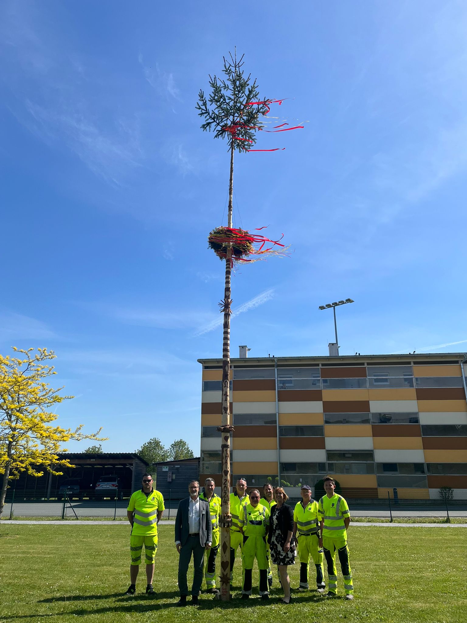 Letztens fand das traditionelle Maibaum-Aufstellen im SeneCura Sozialzentrum Unterpremstätten statt. Begonnen hat die Veranstaltung mit tollen Grußworten durch die erste Vizebürgermeisterin der Gemeinde, Ingrid Baumhackl. Anschließend haben die Gemeindemitarbeiter:innen den Maibaum aufgestellt, welcher von der Familie Gruber aus Premstätten gespendet und zugestellt wurde. DerFamilie Gruber gilt ein besonderer Dank, da sie seit mehreren Jahres als Maibaumspender auftritt. Die Bewohner:innen des Hauses gestalteten in liebevoller Handarbeit den Kranz und das Schnitzen des Baumstammes übernahm der Mitarbeiter Gerhard Wippel, der durch den Bewohner Josef Schloffer unterstützt wurde. Natürlich wurde das Ereignis sowie die anschließende Feier durch die Band „Trompetenexpress“ musikalisch umrahmt.