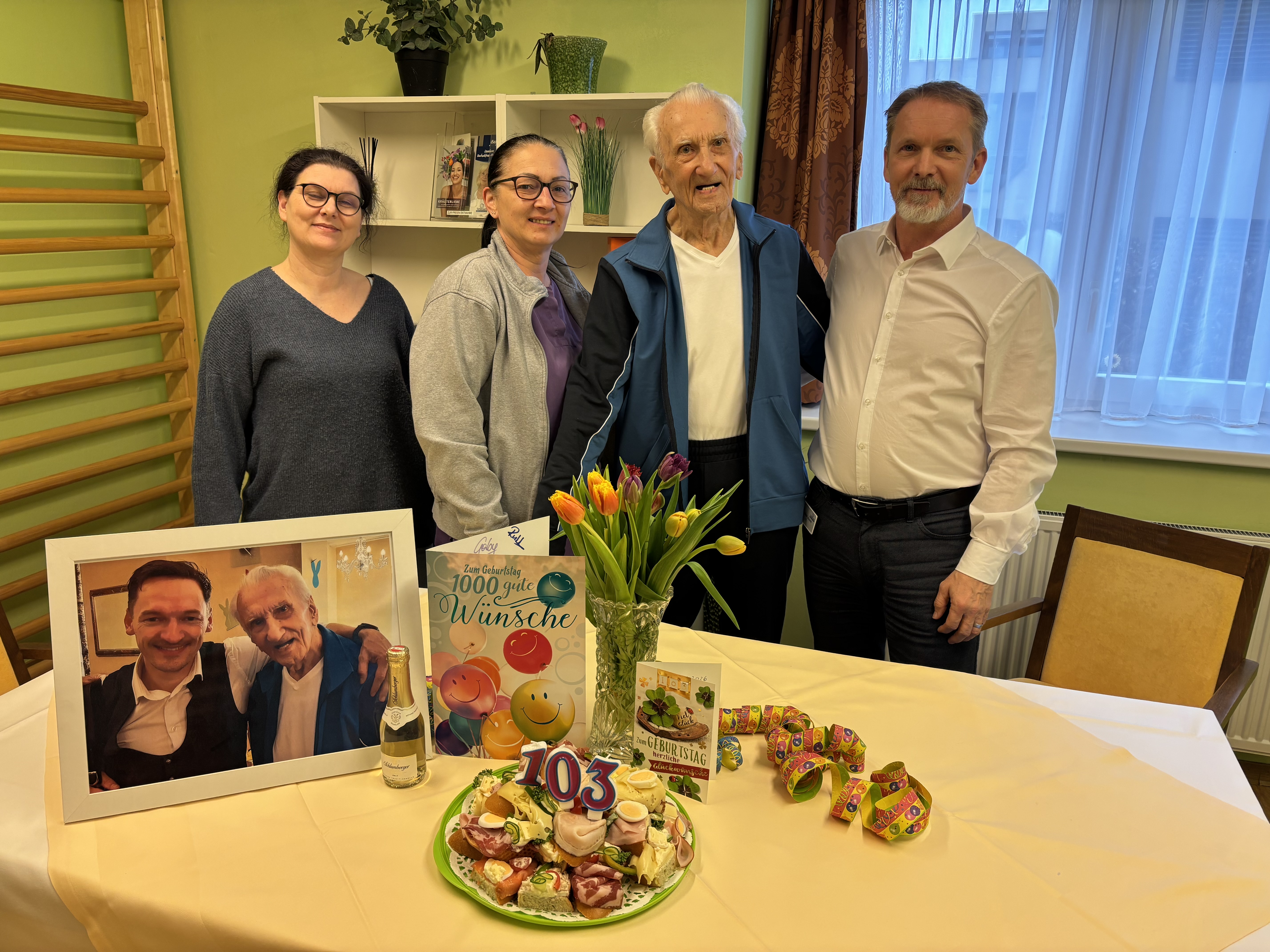 Im SeneCura Sozialzentrum Unterpremstätten durfte ein ganz besonderer Anlass gefeiert werden: Bewohner Johann Holzer beging seinen 103. Geburtstag. Zu diesem außergewöhnlichen Jubiläum stellten sich Hausleiter Harald Steiner sowie Pflegedienstleiterin Brankica Zec mit herzlichen Glückwünschen ein und würdigten diesen besonderen Ehrentag. In angenehmer Atmosphäre wurde gemeinsam gefeiert und auf ein beeindruckendes Lebensalter angestoßen. Solche besonderen Momente sind für alle Beteiligten von großer Bedeutung und bleiben noch lange in schöner Erinnerung. Das gesamte Team wünscht Johann Holzer weiterhin alles Gute, vor allem Gesundheit und viele weitere schöne Stunden im Kreise der Gemeinschaft.